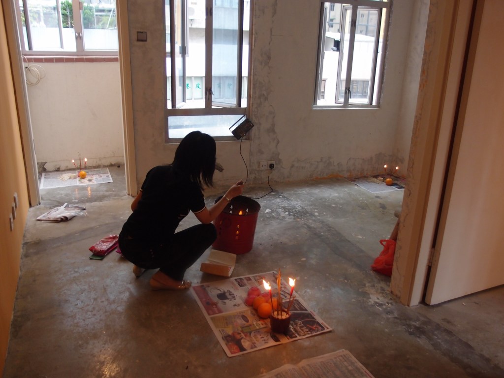 話說以前在大角咀有一間九龍殯儀館,附近有很多五六十代舊樓宇,該處地方到黃昏後夜間,出現陰深感覺!話說有一母女居住在上述大角咀區,該女兒當時約九歲,母親是沒有宗教信仰的人,住宅單位上更不會安上神樓,或視奉神靈保佑!每一天夜裡,人人放工後,都正忙於煮飯給家人享用的時間,一屋之內兩母女每天都在廚房內閒話家常,其中有一天,兩母女又在廚房內閒談煮飯,突然間母親漏了些東西在廳外雪柜裡,便吩咐小女兒恊助睇實廚房的火,母親出了大廳雪柜拿東西,當拿了東西回來後,發覺女兒面色倉白,問口問女兒,是否有甚麼不舒服?為甚麼面色難看?女兒就答母親,剛才媽出大廳後,就有個年老婆婆問她拿水飲?母親聽後立刻知道甚麼一回事!事不尋常,因為全屋只有母女二人,何來會有第三者?大門還是關閉的。從女兒描述中知道老婆婆和人一樣,較人一般蒼白的面容,相信是以前若干年前是屋主或者死在這裡的人,因老婆婆仍棧戀這裡為家,不以為然。而對方女兒時運較低,就見到婆婆出現,但我相信這老婆婆絕無害人之心!事後當事人遇上筆者,將當時情況告訴我?隨後我問對方?妳們在入伙前有沒有做拜四角儀式,她說不信神,因此沒有去拜四角儀式,更加不會去供奉神靈,我命對方,從今天之後,我要幫她家補拜四角儀式,通知靈界的人,這屋已有陽間人居住,勸解對方離開,並求對方原諒切勿打擾母女,更備了一間紙屋金銀衣紙燒給對方上路,將對方遷離虛空法界,以後兩母女再沒有遇上婆婆出現,從這故事出發點是,當妳準備做新業主時候,記得先做拜四角儀式通知靈界收樓,勸靈界離開,拜四角方法,可透過懂得拜神的人進行去做,較為安全妥當。